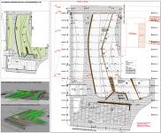 _2 covered parking lots, one on the north side of the intervention and one on its south; these are studied to make use of the gap in ground levels between the beach and town, so that their roof coverings may also be used as the grounds of a “piazza” (a public square) in the first case, and as a “giardino” (a public garden) in the second case.
