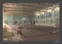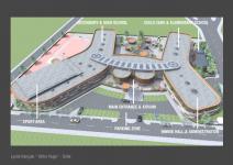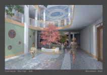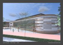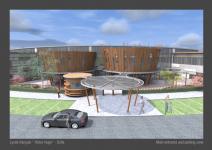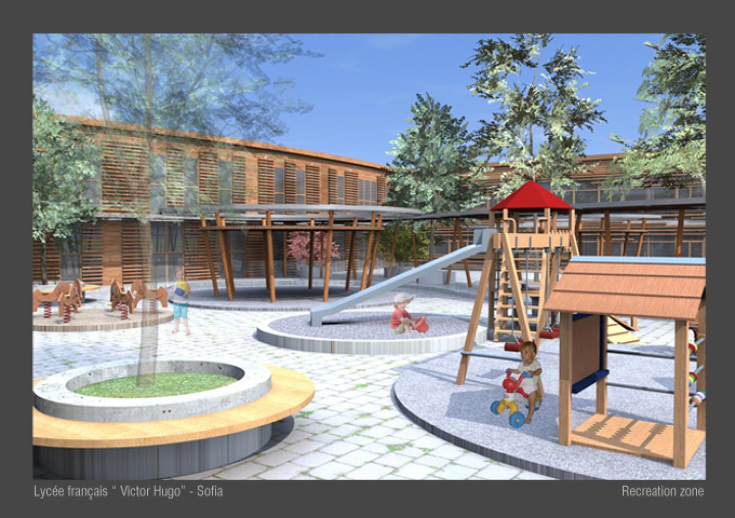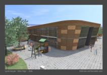 The Entrance is oriented to the mountain Vitosha. This part which include the services, is more close ans made in stone to keep the warm.