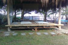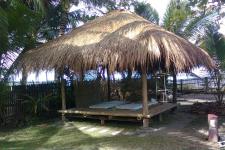 This roof structure is nearby beach surrounded by coconut tress giving much needed shade from harsh tropical sun. Adjustable shades (used as needed) on each side of the cube to tone down the glare of reflected solar radiation, giving an excellent sanctuary to laze with nature.