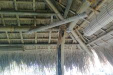 This roof structure is nearby beach surrounded by coconut tress giving much needed shade from harsh tropical sun. Adjustable shades (used as needed) on each side of the cube to tone down the glare of reflected solar radiation, giving an excellent sanctuary to laze with nature.
