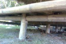No nails & bolts used, instead hard wood & bamboo tenon & mortise with PE Plastic ties.