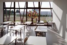 Thanking to well-orientation, thick insulation, green roof and sophisticated technologies (geothermy, photovoltaic panels, natural ventilation chimneys, building automation system) the school consumes only 3,6 kwh/mc/year, corresponding to Class A+ of italian law with a building cost of 1.030 euros/square meter including furniture.