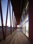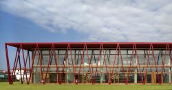 In this project memory is represented by a remind to cultivation, the red coloured ‘barchessas’ of the Veneto Region with their arcades opened toward south. All the ground floor classrooms facing south-east and south-west are directly opened to this arcade paved in wood in order to possibly invent special lessons in the open air. The contemporary is linked to Benetton Factories and their culture of good design and their philosophy spreading colour democracy all over the world.