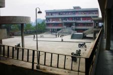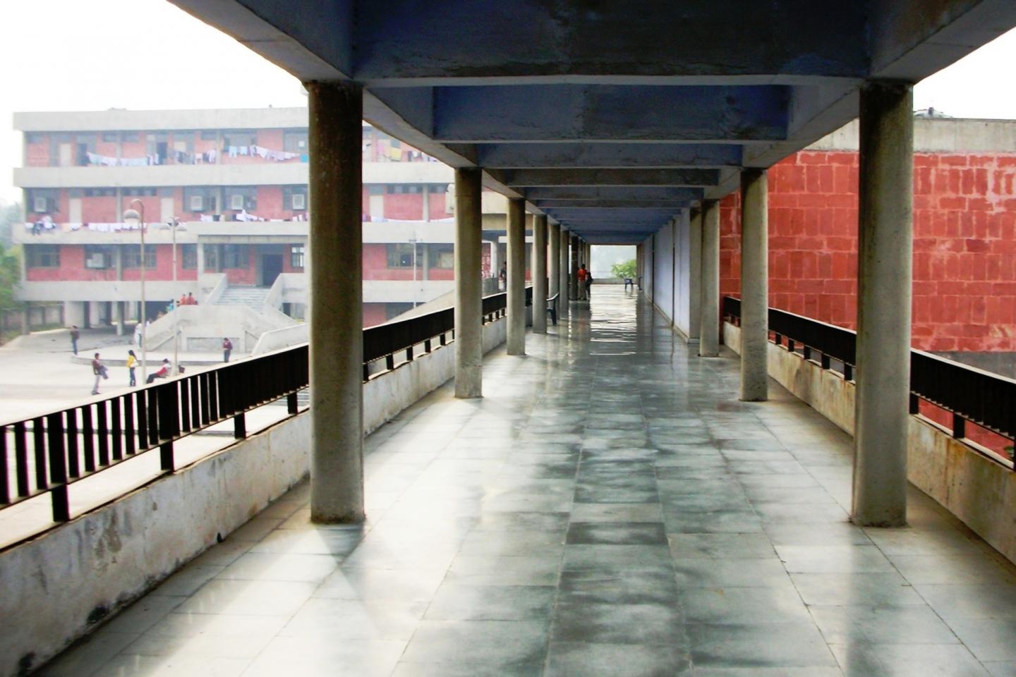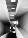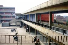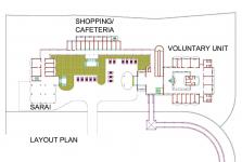 To cater to the daily needs of the large number of staff residing on the campus, their families, patients, their relatives, and other daily commuters, a shopping arcade and cafeteria have been provided there. It forms an integral part of a mini-complex comprising, apart from it, a serai and the Voluntary Unit. Located on the western fringe of the campus, it contains 10 shops, public toilets, and stores at the ground-floor level. The cafeteria is located at first-floor level. Both the shopping arcade and cafeteria have a two-tier covered link-passage to the Voluntary Unit on the north and serai on the south. The cafeteria also draws direct access through a wide flight of steps emanating from a large esplanade engulfed in-between serai, shopping arcade, and the Voluntary Unit. The large dining hall of the café can accommodate more than 100 persons at a time. This column-free hall has high ceiling and clerestory windows for effective light, and ventilation that creates congenial ambience inside. The main kitchen and pantry are placed at the same level as the dining hall. For workers convenience and their outdoor working, a spacious terrace has been provided along side the kitchen. Workers stay-rooms, toilets, and stores are located at the ground-floor level abutting the rear wall of the shops. These are linked to the main kitchen through an open-to-sky concrete staircase. By virtue of its location and easy and inviting access, the shopping arcade and café form the hub of activities and a centre for pleasure shopping and relaxation.