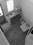 Jalousie windows all over to have a controllable openings for ventilation. Polished raw concrete for flooring.