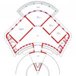The entry to the building has been made conspicuous by a sculptural porch which is the hallmark of the design. The plan form has been evolved in a symmetrical manner. The architect believes that symmetry is encountered everywhere – in nature, engineering, arts and science, for example, the symmetry of the butterfly and tree leaf, symmetry of a car and plane, and the symmetry of atomic structure of molecules and crystals. He is of the opinion that strong geometrical and symmetrical plans have more acceptance than asymmetrical plans. This is due to the persistence of such liking as besets the common human mind-set. Architecturally speaking, such plans are less vulnerable to undesired changes suggested or attempted by some clients at later stages.