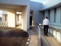 The building has been designed as a sculpture to work in. it is a pleasant blend of solids and voids, straight lines and curves, angular and curvilinear planes, all creating an interesting chiaroscuro.