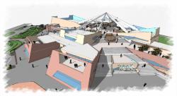 EXPLOSION OF SPACE.....the central space is born from the explosion of mass...but it acts like a magnet holding the other activities together. It is the stage for expression and celebration.....
