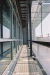 The materials used, determined the total image of the building. Concrete, glass and steel are principal. The solid vertical surfaces are made of exposed concrete or are cladded with corrugated metal sheets or steel sheets.