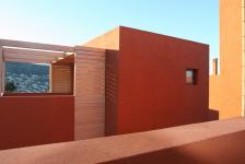 As facades withdraw from the streets, the houses open up, and pergolas and screens frame views on the first floor, while on the second floor, two of the houses, view towards the sea front and the other two towards the mountains.