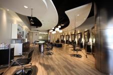 Art Arquitectos designed this project for a Paul Mitchell salon, at Houston Texas. The low walls of this beauty salon bring out the depth of the space it’s housed in. The stone slab, which has been painted dark gray, is laid bare before the premises to provide a backdrop against which the round white soffits hanging over specific areas stand out. The haircut stations are semi-open and arranged in a circle around the focal point of the salon, which is where products on sale are displayed to the clientele. The hair wash area is also semi-open, albeit with a little more intimacy, and one area, akin to a spa, is completely sealed off.