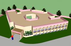 The building has been designed on a Cartesian pattern to simplify the construction process and improve the functional utility. However, to enhance the visual appeal of the building-form, the plan has been aligned at an angle of 45 degrees and the entrance has been provided in the corner along the diagonal axis. With the change in the viewing angle, the building not only looks bigger than it actually is, but also offers multiple surfaces three dimensionally highlighted with light and shade.