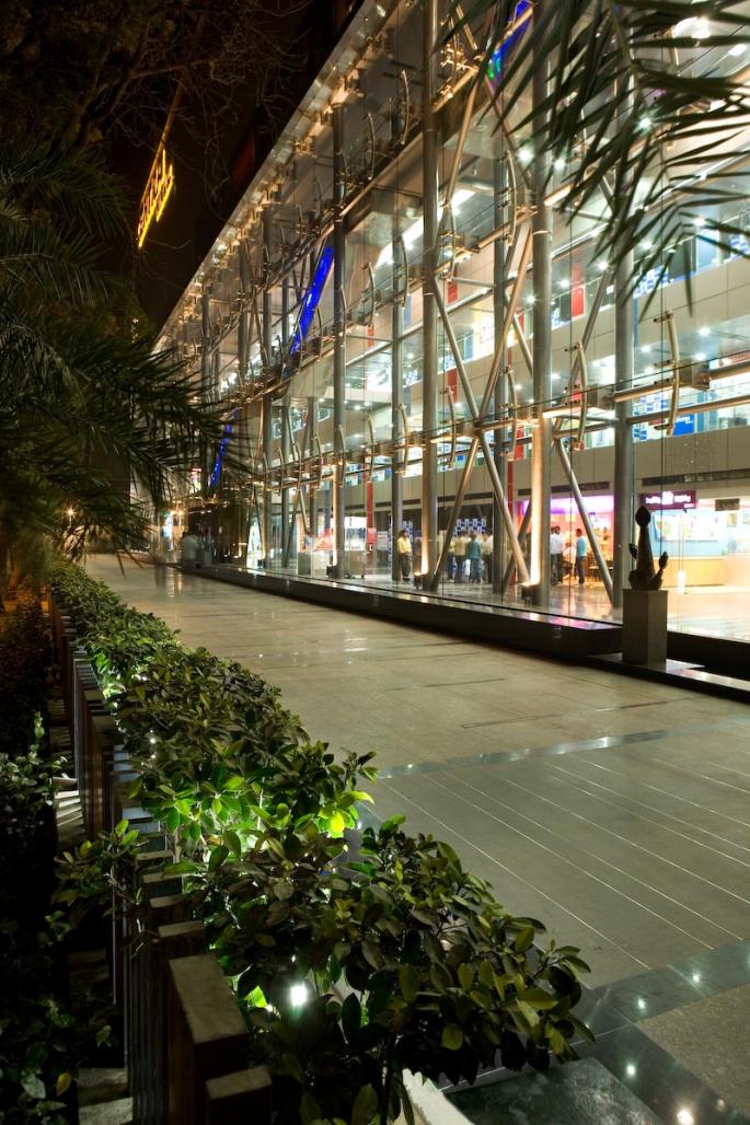 The design intent for the mall has two predominant aspects viz. the socio-cultural aspect and the Environmental strategy. Traditionally, malls have been approached with a Box-type morphology that excludes people and is not democratic in nature. Hence, the approach has been to reverse this morphology and open up the Box instead towards the site context and surroundings. The built form enclosure is straight-off the road and the design approach is directed towards providing a High Street nature to the mall which opens up. An Atrium along the premium road access helps to attain the public disposition, whilst maintaining the mall typology. The retail shops and the entertainment block face the atrium and being wholly transparent, it allows visibility of all the shops from the road. State of the art escalators and elevators allow for the vertical movement and build in pedestrian linkages inside the mall. The layout is extremely efficient with very low super area loading. There are two levels of basement with adequate parking and centralized building services.