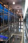 The Building is oriented along North-South to optimize the built form orientation with glazing predominantly restricted to the North side. The remainder of the Built form is mostly solid in order to minimize Heat gain and reduce the mechanical loads. The glazing also facilitates natural light into the public areas, which reduces electrical energy consumption. The environmental code recommends the glazing to be under 40% of the surface area of the built volume which is well-realized in the design. A 100mm separation is provided between the glass façade and the concrete block to serve as a heat insulator. Also, the glass is low e-coated which further reduces the heat gain.
