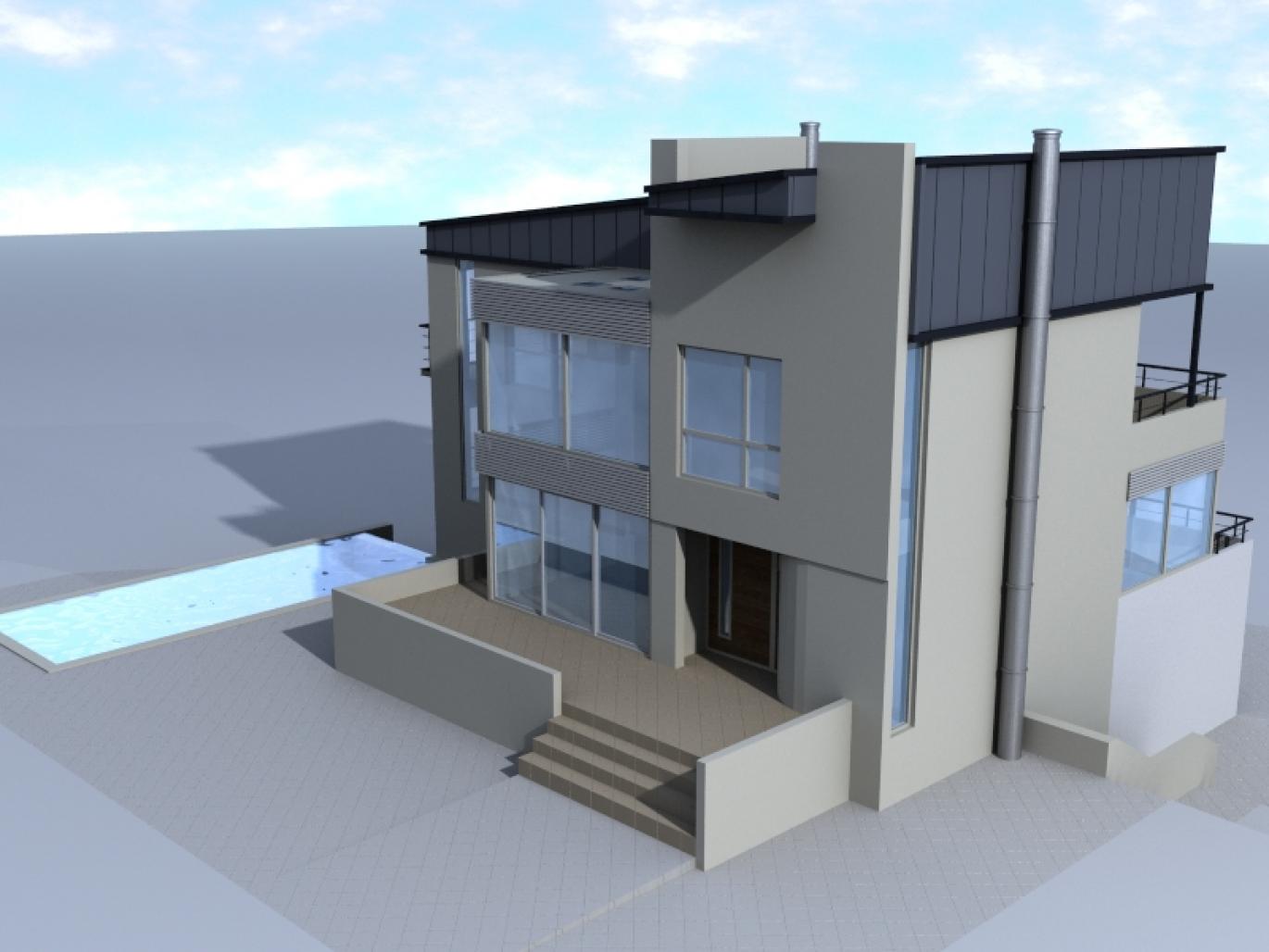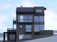 A single family house, which functions in three levels. Its main property is its having important views from the three out of its four sides. The living room being placed on the second level ensures its having the best possible view. The house is surrounded by interesting open spaces ranging from the front garden, where the entrance is and the side swimming – pool, to the back yard, where a small orchard will be planted.