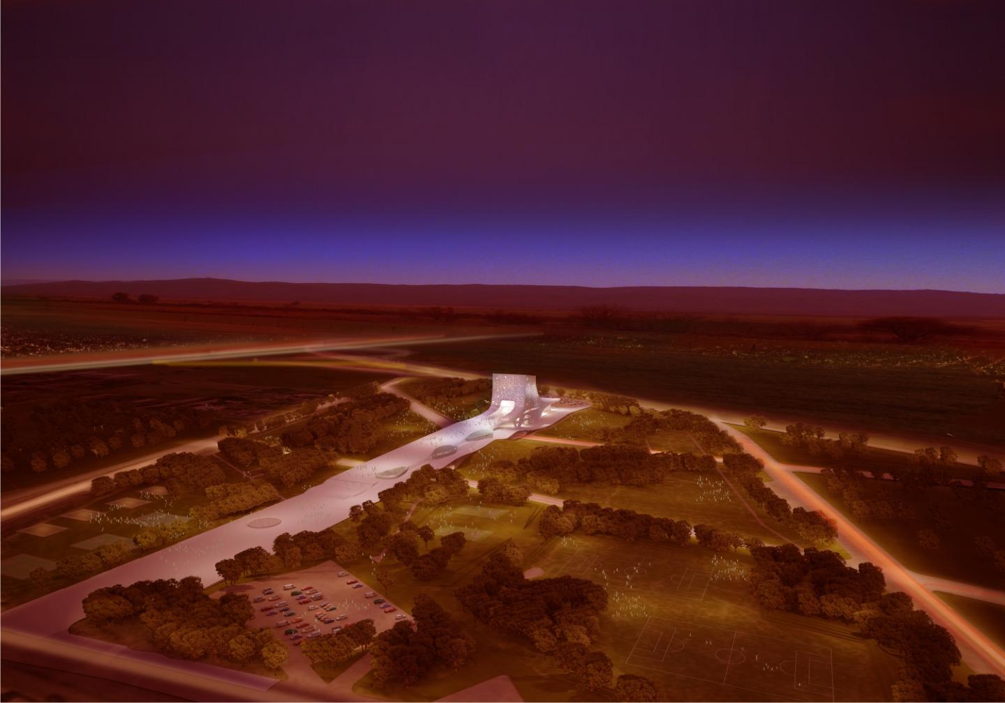 We studied the disperse and extended growth the city has nowadays. The two existing public cemeteries, were originally located outside the central area, and are actually immerse in the urban sprawl, one in the central area and the other one in the intermediations of the city. For such reasons, we worked in the city border area, stating a precise limit for the city, trying to monumentalize its periphery, creating a mega-scale project that will turn into a referential milestone, urban gesture, which will function as a CONTENTION MESH for this diffuse and unmeasured city growth.
