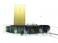 The rest of the Hotel is composed of concrete columns with perimeter walls and cores in concrete to act as wind bracing for the ensemble.