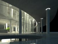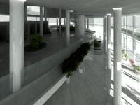 The building is essentially simple planes at different levels having landscape. It becomes an extension of the existing landscape, but in the vertical direction. For its skin, glass has been used which combines the building and landscape together.