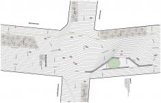 Particular plates of the central pattern of the design are out of black asphalt (ten centimetres strength). This design-measure is a reaction to the common corrective procedure: damaged parts of pavement are getting ?repaired? by pouring black asphalt in the resulted gap. That is how this stylistic element is used to influence the pedestrian areas? appearance.