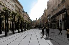 In front of important public buildings huge formatted natural stone plates (Porphyr) are used.