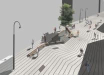 The pattern of the surface design reacts to its surroundings (buildings, discharging streets, et cetera) and the new implemented elements (?islands?, chill out areas, et cetera).