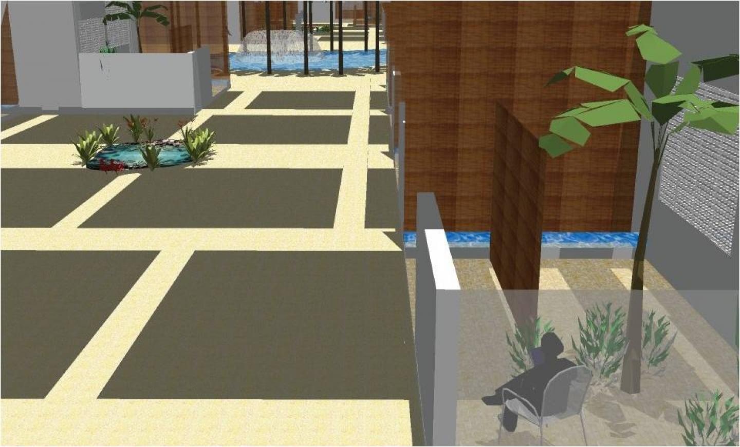Finally, in the face of the bareness, the intimidating immensity of the desert, one needs to find ways to recall life in this dead territory. So I tried to use color, water, and vegetation in a recurrent way, and create vistas for visual dialogue of the dwellings. Will these be enough to counter the hostile feeling of emptiness? Surely the challenge overshadows the means, but bringing life in a desert is a dream worth living and fighting for.