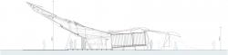 that the pavilion is part of the city all the time. Several awnings are “flying” over the passage emphasizing a transmitting function of culture in the sense of openness, lightness and transparency.