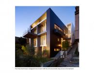 A new house I recently completed for myself in the Berkeley/Oakland hills overlooking the San Francisco Bay Area. It was designed using a variety of sustainable materials.The house overlooks the entire San Francisco Bay Area offering panoramic views from every room and vantage point. Sunken down into the hill, it allows for direct level access to a back yard and opens up a generous entry courtyard to the house as well as a series of level gardens as one makes their way through the house, challenging the notion of perched hillside home, detached and offering no direct access and dialog with the land and their surroundings. The whole western façade slide open making the indoor spaces one with the Bay. (Railings on the inside)