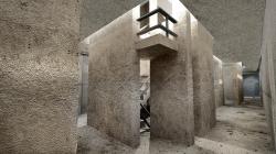 houses, silent, walls and such corridors every thing are silent each space are empty, in our site the cluster is and enclosed and protects space holding only an essential elements, ceiling, floor, a small slits of lights, groves between the walls opens the view towards the city, all these impressions gives us a trace that there is a mysterious story about these houses.