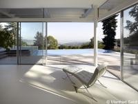 From the dining area another couple of steps lead to a comfortable area where one can lounge on the sofa or chaise longue overlooking the swimming pool and enjoying the marvelous view over the city. There the floor is covered with a bright limestone, similar to the outdoor flooring at the pool level. Picture Nr 7, 24, 25, 26, 61