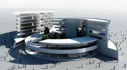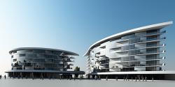The residential area is situated in the east part of the property in order to provide sunlight all day long. The facades positioning allows not only sunlight, but also a visual contact with Yerevan and Mount Ararat. There are two residential complexes with two buildings each. They are also oval shaped by plan, rising eight floors maximum. The residential area provides space for living and for development of activities, which will ensure better life and correct functioning as well.