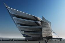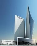 The Intercontinental hotel building is designed as the dominant one, with height over 100 meters and 30 floors, according to the special requirements of the assignment. The lower body sits on the three underground levels and is leveled, while the upper part dominates with two bodies separated physically, but communicating in composition.