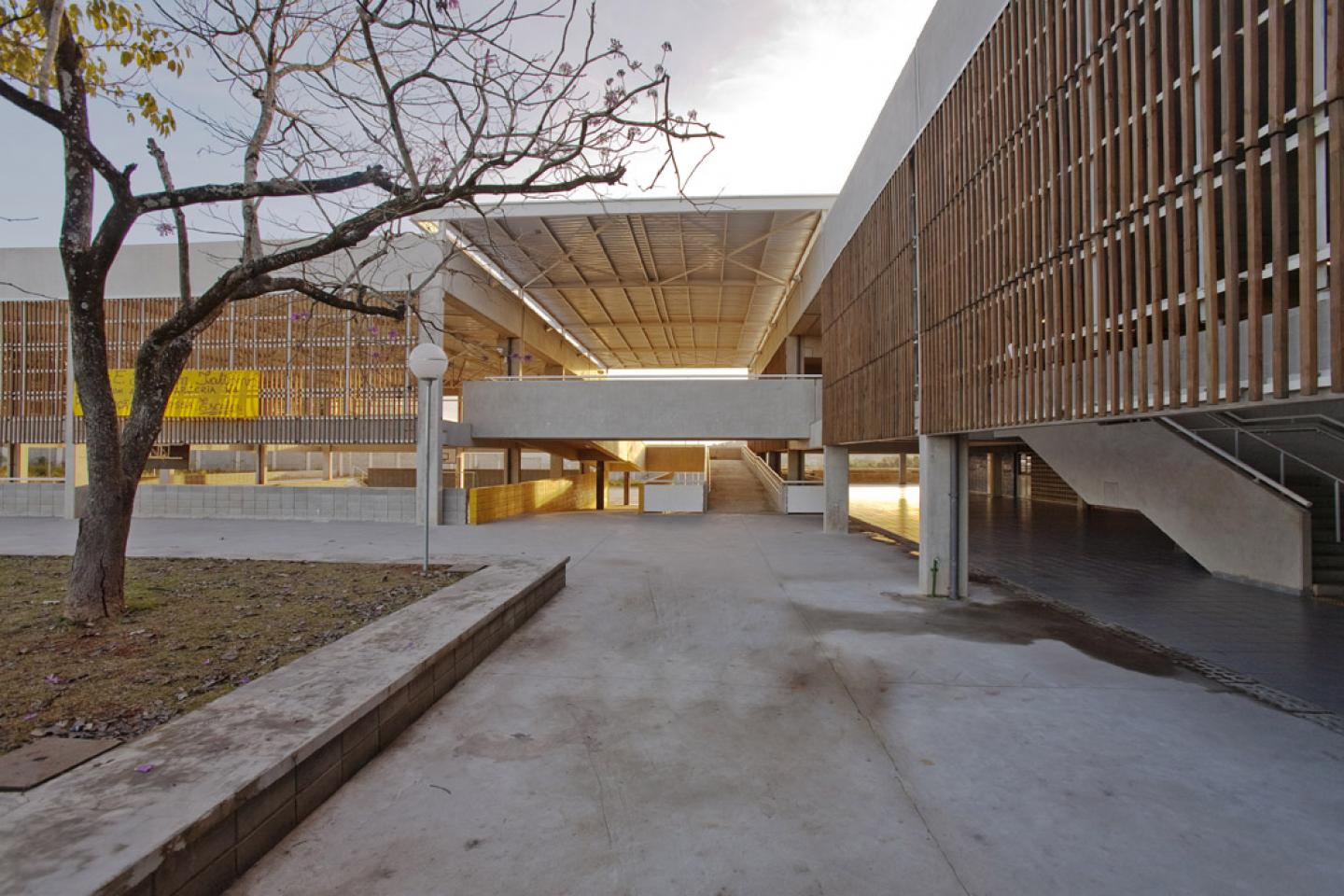 To design in a site within the city limits enables us to test spatial strategies of occupation and organization that are only possible outside the city of São Paulo: a spread out building open to the landscape. The school was organized on a perpendicular axis to the street. The main program was divided into two blocks vertically articulated by a ramp.
