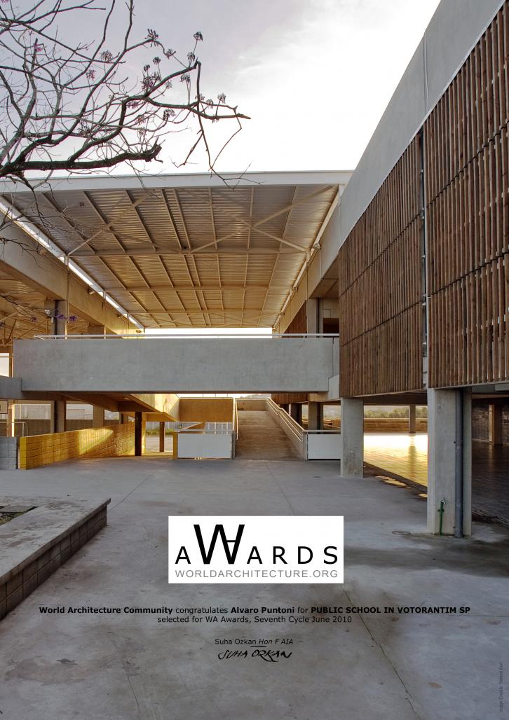 PUBLIC SCHOOL IN VOTORANTIM SP by Alvaro Puntoni in Brazil won the WA Award Cycle 7. Please find below the WA Award poster for this project.