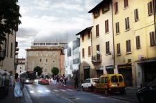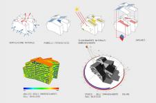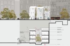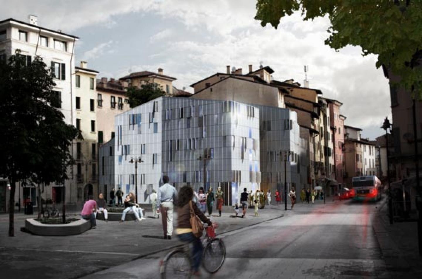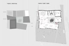 L’intervento proposto per la ricostruzione parziale dell’isolato a nord di Largo Formentone a Brescia riprende il carattere e le proporzioni delle tipologie edilizie del luogo, rilette in chiave moderna nell’ottica di rendere i suoi elementi compositivi (copertura a falda, corte ) funzionali alla nuova destinazione d’uso e alle strategie climatiche adottate. Come negli esistenti, gli accessi all’edificio avvengono dalle vie laterali opposte al prospetto sud che conserva l’austerità dei muri ciechi alle sue spalle, mentre la tipologia a corte garantisce il maggior apporto di luce naturale ed un rimando fedele ai tipi edilizi della città storica. L’ingresso sottolineato dalla spaccatura dei volumi su Via San Faustino lascia intravedere la presenza del giardino interno a lato del quale si trovano l’ingresso dell’InfoPoint e della sala espositiva. Al primo piano si trovano gli uffici DUC e l’ampia area rivolta ai servizi universitari sul lato sud dell’edificio, separati attraverso l’atrio aperto sulla corte interna. Al secondo piano sono situati l’area ristoro e una seconda area universitaria.