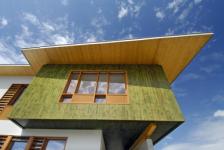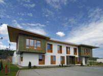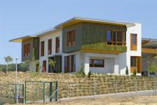 The reresentative wing was built on a two storey concrete foundation using BINDER BBS wooden panels. Both the supporting walls and the separation walls were built by these panels, furthermore this material was used for the roof covering. The wooden panels are made of pinetree layers put on top of each other in opposing directions, these layers were then pressed to create a very strong material. It has good vapour barrier facilities, and can store internal temperate very efficiently. The prefabricated panels were cut to size based on the plans provided by the architect and were assembled on the site within 10 days. Probably this was the shortest work phase of the overall construction period (six months altogether).