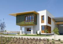 An entirely different concept is reflected both in the shaping and in the selection of materials of the main block.