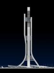 From the plaza surface, a dramatic ramped entry volume extends up in a sweeping curve to form the southeasterly tower leg. This leg contains the ceremonial pedestrian access to the tower through an interior entry hall. The space incorporates a series of events and accommodates exhibits and audio-visual experiences and relates the experience to the tower’s movement skyward. This tower leg extends to 449m above the plaza level and is the only tower leg which extends to the full height limit relating the transformation from earth to sky to the entry experience.