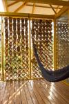 Due to its orientation, The sun travels around the house traversing the patio thoughout the day. This then makes the shadows from the bamboo to be
