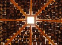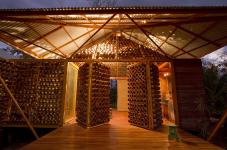 Both modules are composed of a bamboo cone structure that opens up to the sky under an “umbrela” roof that provides a large shadow.