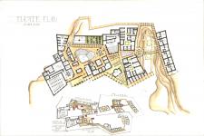 Conserving the contours, using material from site (Mud) space organization and shaded sidewalks give the project a hint of applied sustainability