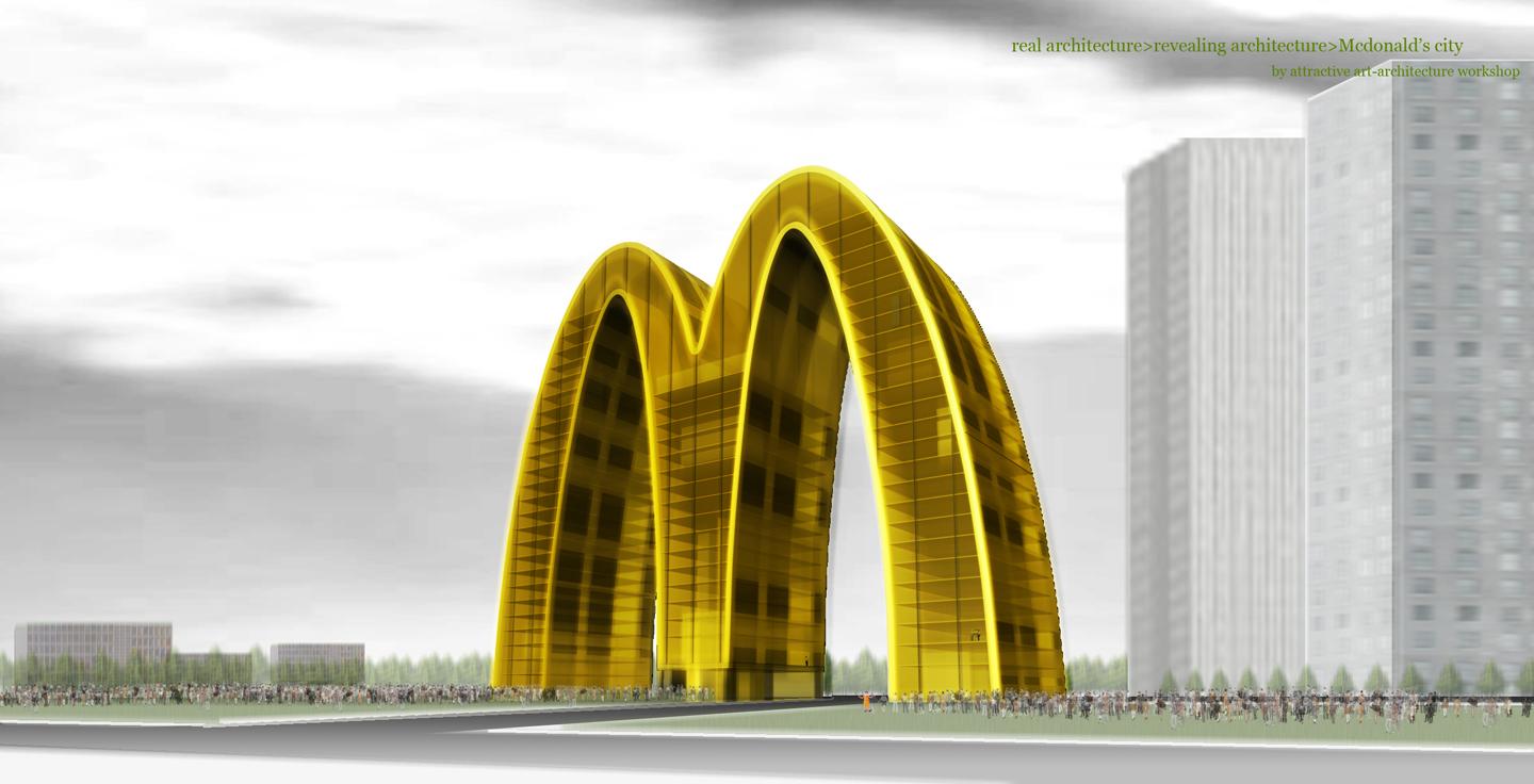 If we agree that the representative building in the middle age is cathedrals, the commercial building should be paradigmatic in today. However the main stream of todays architecture is found in the realisation of public building, such as museum. At the level of the architecture, the revealing architecture stops the commercial building from the role of the background of signboard. At the level of the urbanism, The McDonalds city proposes a coloring works on the existing urban tissue.- so this city dont need a tabla-rasa that Le Corbusier needed- to make a placeness of the post-capitalist cities.