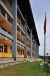 Different levels of the verandah corridor provide large outdoor areas protected from the elements, by the large overhanging roof. This simple double pitched roof gives the school a distinctive character, and open up the interiors to the paddy fields and mountain views beyond. Resultant raked ceiling exposes the underside of the roof to the corridor verandahs of the school.