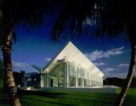 Situated in a residential community on a one and a half acre, waterfront site, this house features vistas to the southwest across Doubloon Bay. One enters the wedge-shaped site, which fans out to the water, from a winding avenue lined with royal palm trees. The footprint of the house, perpendicular to the path of approach, divides the site into public and private realms.The house's linear organization consists of four parallel layers which are organized from front to back. A raised, main entry penetrates a wall of limestone which protects the front layer: a skylit corridor which runs the entire length of the house. A twelve-foot-wide bar/module strictly orders the dimensions of all open, communal and closed, cellular spaces. The primary spaces, including bedrooms and living spaces, are arranged in linear formation, providing each room an impressive view over the lap pool to the Bay beyond.The butterfly roof, an asymmetrical double cantilever off the main structural columns, satisfies the community's roof pitch design guidelines while reinforcing the house's orientation toward the water. This roof form, which consists of two layers, visually floats above the primary spaces of the house, giving the impression of an outdoor pavilion from the water.