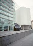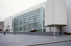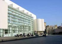 Located in an area that was previously a monastic enclave, this museum establishes a rigorous dialogue between the area's historic urban fabric and the contemporary art within. The nature of the site's existing paths and routes is reflected in the building's organization, most notably in the main entry, which is paralleled by a pedestrian passageway between the museum's public Sculpture Garden and a newly created plaza in front of the Museum, the Placa dels Angels. This paseo joins the existing pedestrian network running through the old city. Overlooking the Placa dels Angels, the Museum's south facade displays a diversity of form appropriate to its rich context. The main entry is framed by an overhanging screen of planar elements and rectilinear windows. Linked visually to this clearly defined entry by a transparent, horizontally articulated glass screen, the Museum's Special Exhibition gallery is enclosed within a billowing shell. This lyrical wing resonates with the contemporary spirit of the Museum's collection and the expressive forms of the enclave's historic character. These elements front a white enameled panel wall, which runs the length of the building's spine. From the entry lobby, visitors ascend a vertical ramp within the triple-height Atrium. This extensively glazed atrium affords broad views of the Placa, orienting the visitor and mediating between the Museum's most public space and the volumes of the galleries.