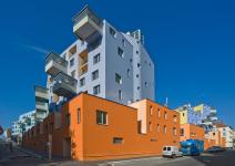 A children’s day-care centre, as well as a large variety of communal outdoor areas with different qualities and types of organisation such as vegetable gardens, lawns to lie upon, sauna at roof level, children’s play areas and introverted loggias (vertical gardens) enrich this oasis for living.