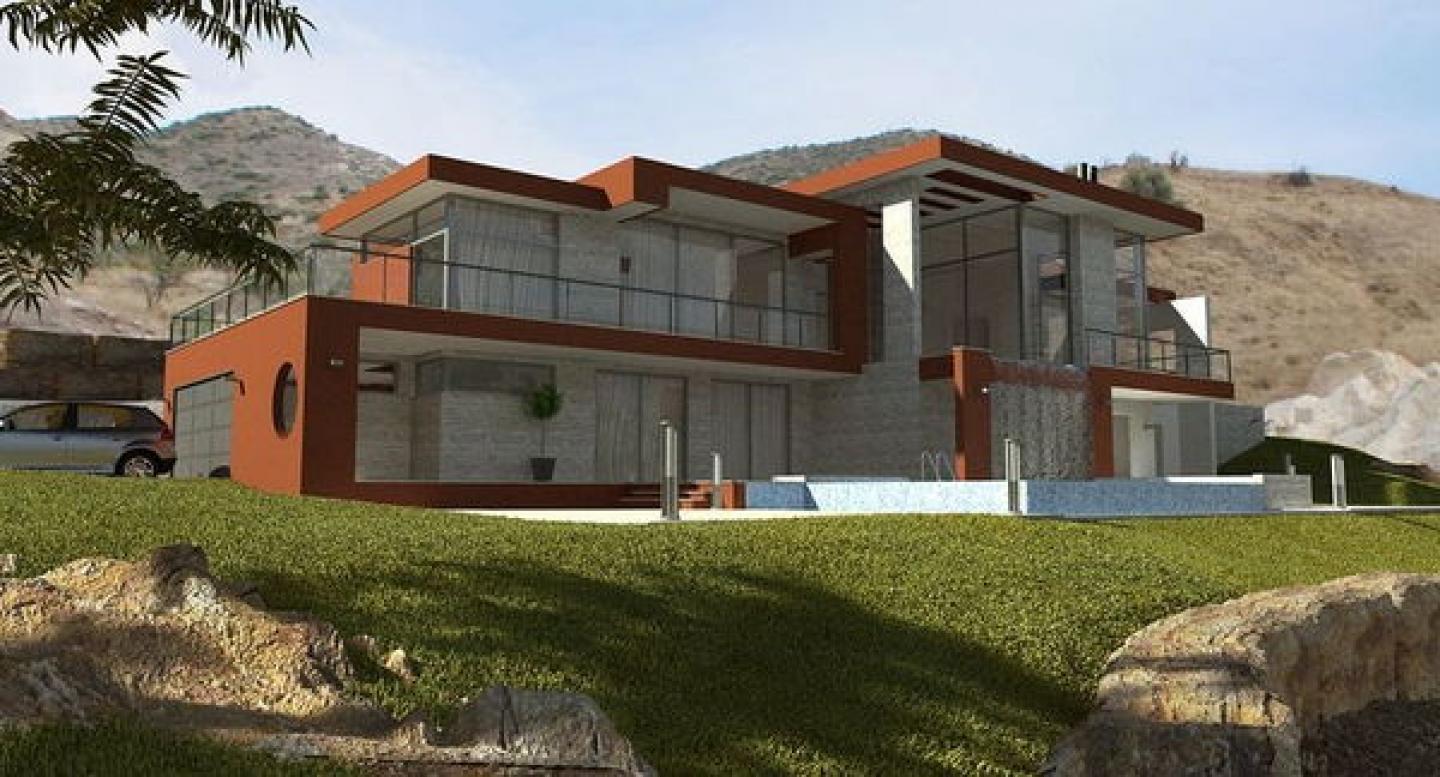 Villa for audiophiles. House designed in Episkopi / Cyprus with beautiful views of the rocks. The client is a audiophile, and required excellent acoustic conditions throughout the home. The project was to create an exclusive, functional and spatial home. The cellar is used as a yard for a swimming pool. On the porch is designed waterfall. This element is visible from the entrance. This piece of visible luxury.