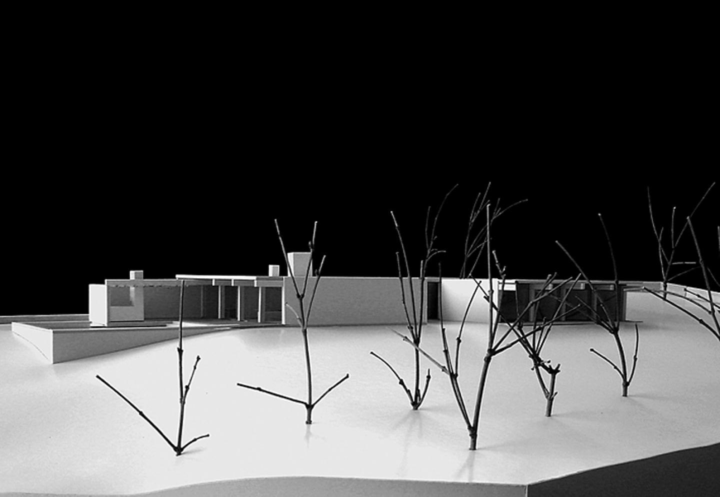 Implemented in the superior part of the ground, the house has its main walls parallel with the walls of the access slope. To both nucleuses correspond two similar volumes with a single floor, connected with a vestibule and uttered between themselves 90º with distinct directions, profiting from the peculiar situations of the both sides of the ground.