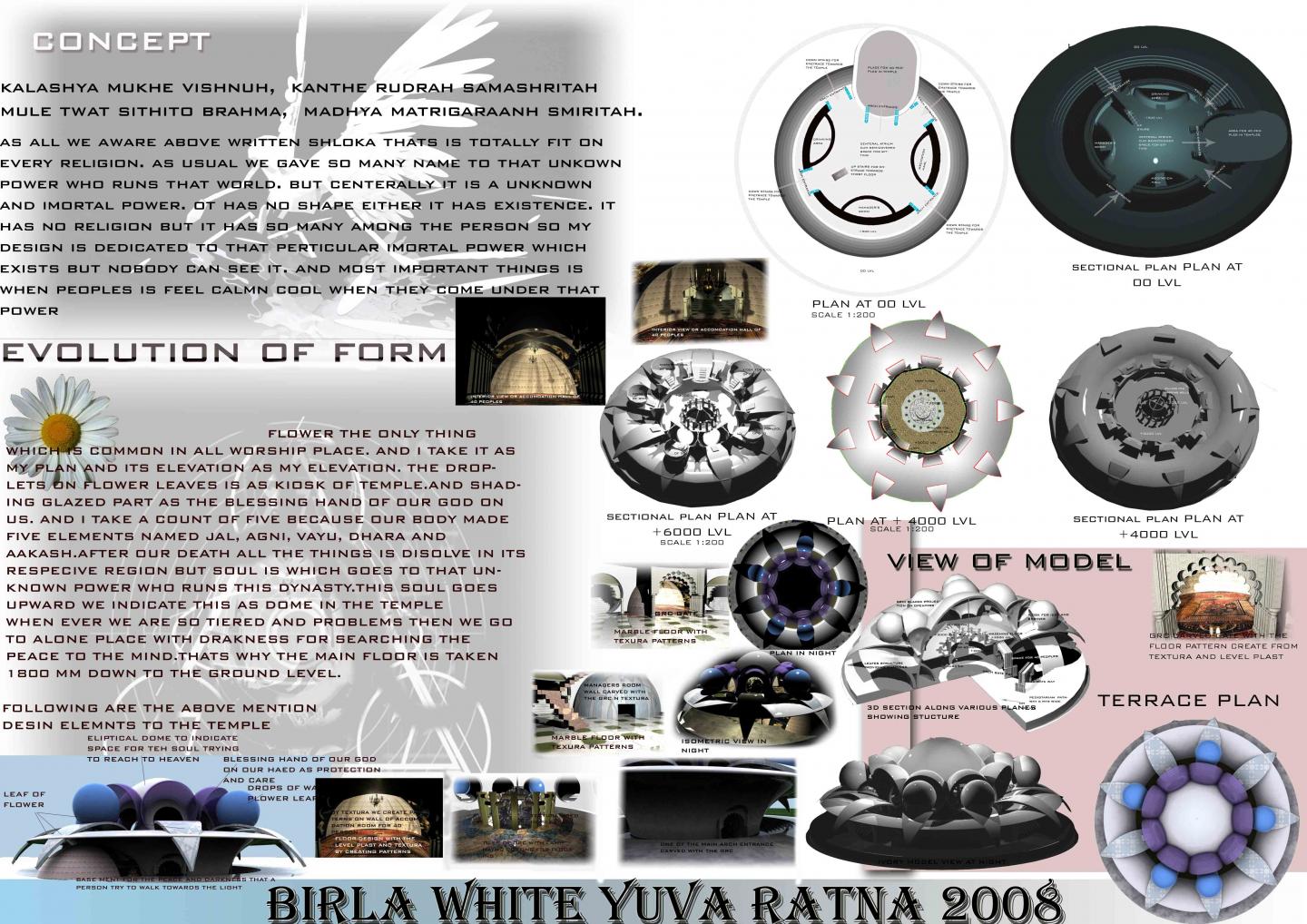 award winning entry in 2008 its a kind a temple and meditation centre based on the folded plates using the basic fabricating material like grc, etc.