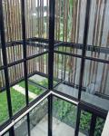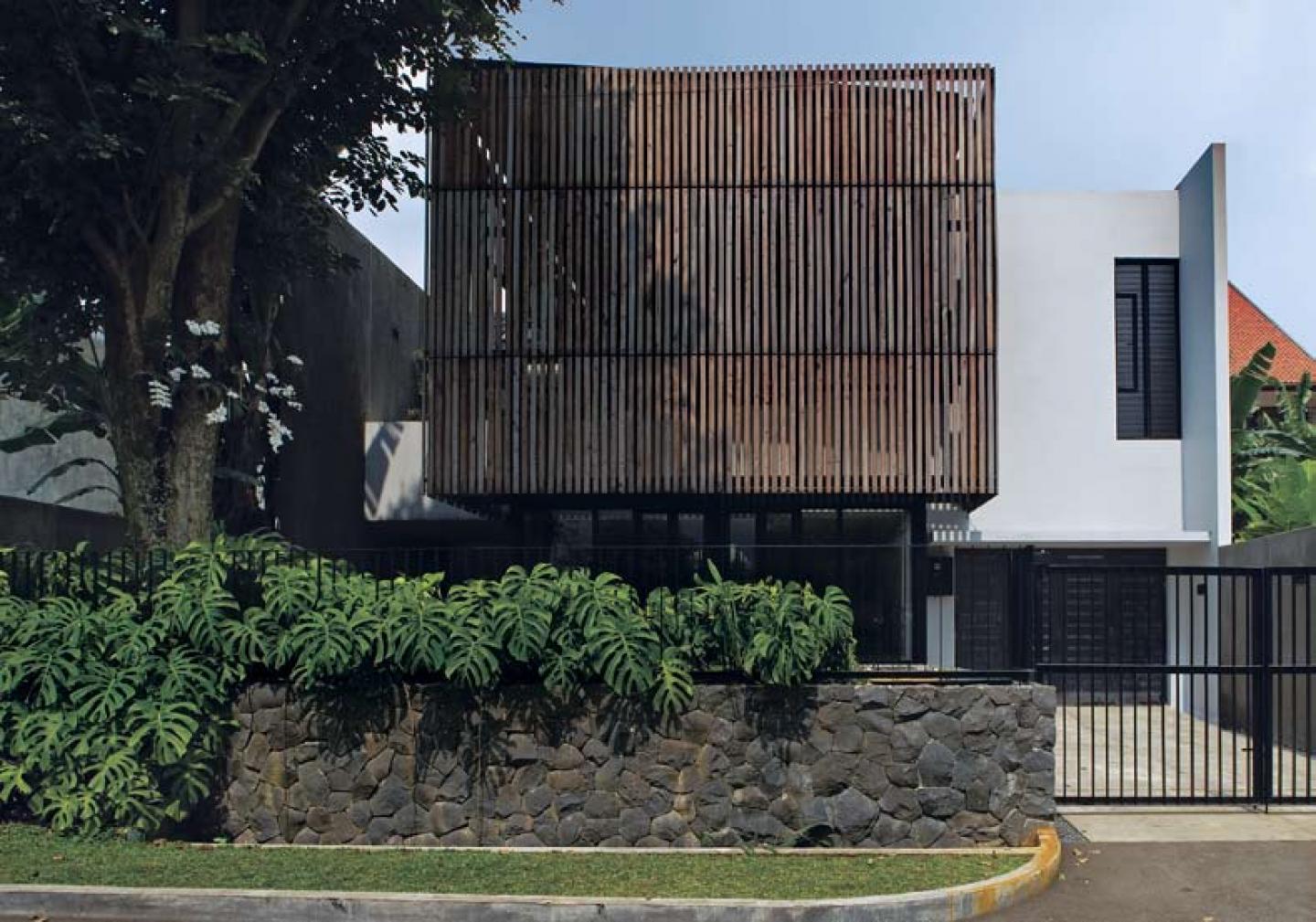The house is situated on a typical 11.7 m x 25 m plot in middle-class housing neighborhood, in the city of Bogor, Java, Indonesia. With high precipitation rate and mild temperature (around 23 - 31 C), except during thunder storms and very hot days, Bogor almost always offer pleasant outdoor environment. Therefore, we think it is the challenge to design a space which can combine the best of both indoor and outdoor spaces for common activities. The brief is to provide a shelter and home for a young family with two active children. Rather than to offer typical layout for the typical plot, we first strictly classify programs into two boxes: (1)massive box for well partitioned private areas and services (bedrooms, kitchen, maid quarter, bathrooms, garage), (2) transparent box for open common areas (living, dining, studio, circulation). The strategy is to collide the two boxes together and form an intermediary space that articulate the transparent box into well defined spaces (for activities). The transparent box shelter activities like an open-air tropical verandah as well as a double-height interior space.